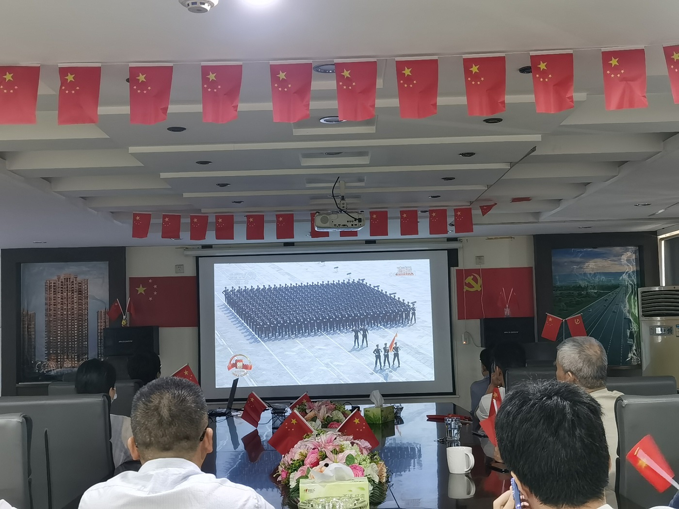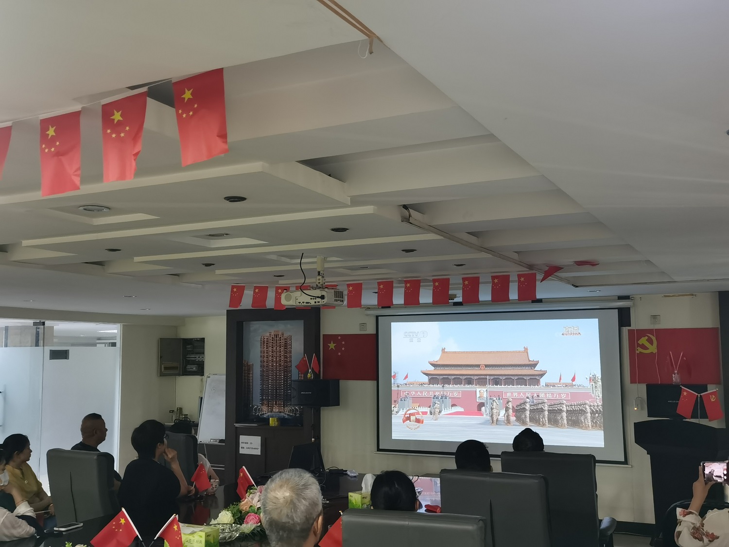 活動(dòng)前期,公司高度重視。提前一天對(duì)觀看場(chǎng)地進(jìn)行了精心布置,懸掛起鮮艷的五星紅旗,那一抹亮麗的紅色在微風(fēng)中輕輕飄動(dòng),仿佛在訴說(shuō)著祖國(guó)的輝煌歷史。同時(shí),為員工準(zhǔn)備了小巧精致的國(guó)旗,讓大家能夠更好地融入活動(dòng),表達(dá)對(duì)祖國(guó)的熱愛(ài)之情。